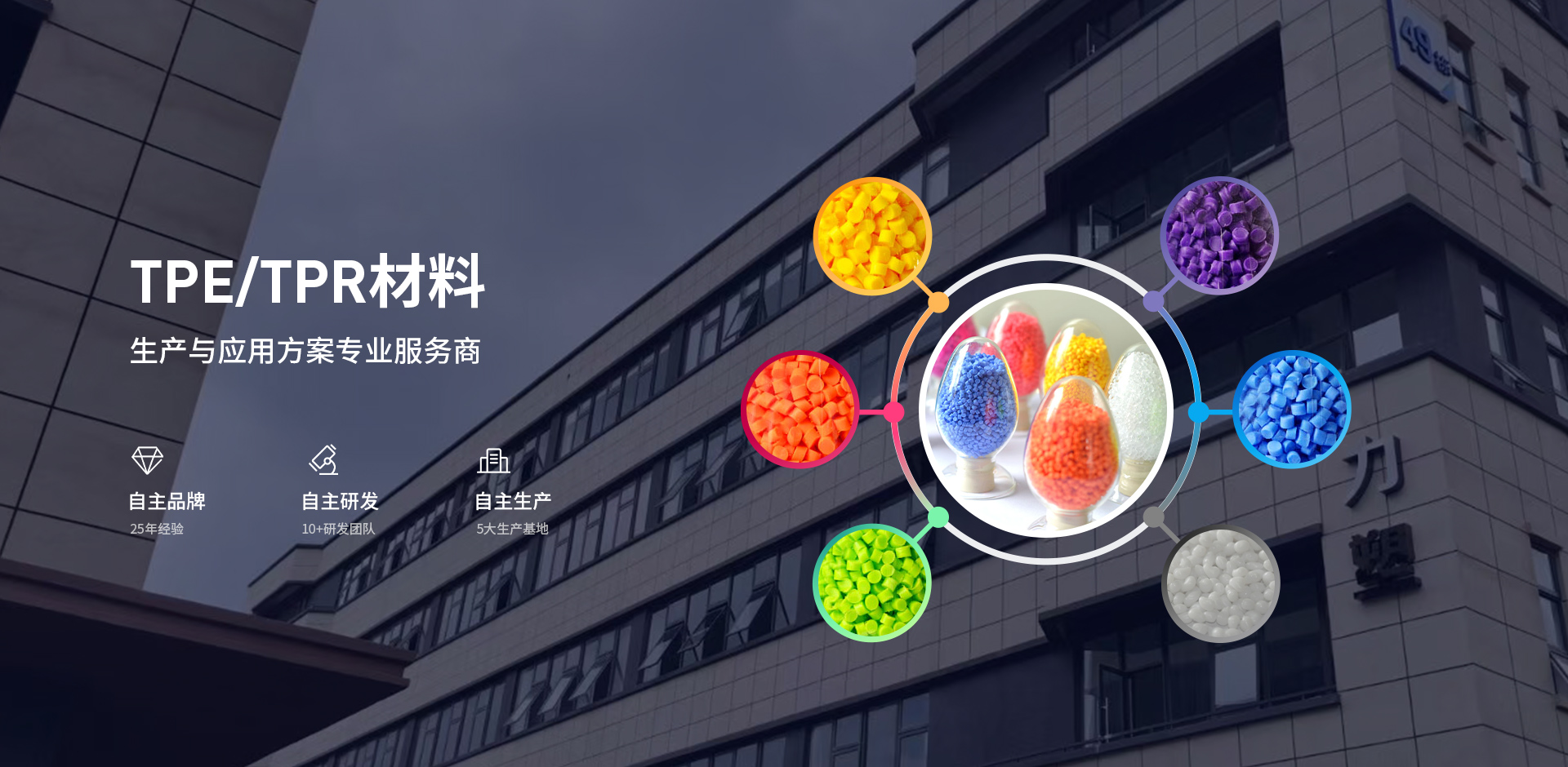 广东乐鱼leyu塑胶工业有限公司起源于1996年,是一家专业研发、生产和销售热塑性弹体(TPE、TPR、TPV、TPU、SBS、SEBS)的国家高新技术企业,多年来以过硬的产品质量与优异的服务能力为中塑赢得了全球客户的广泛认可。