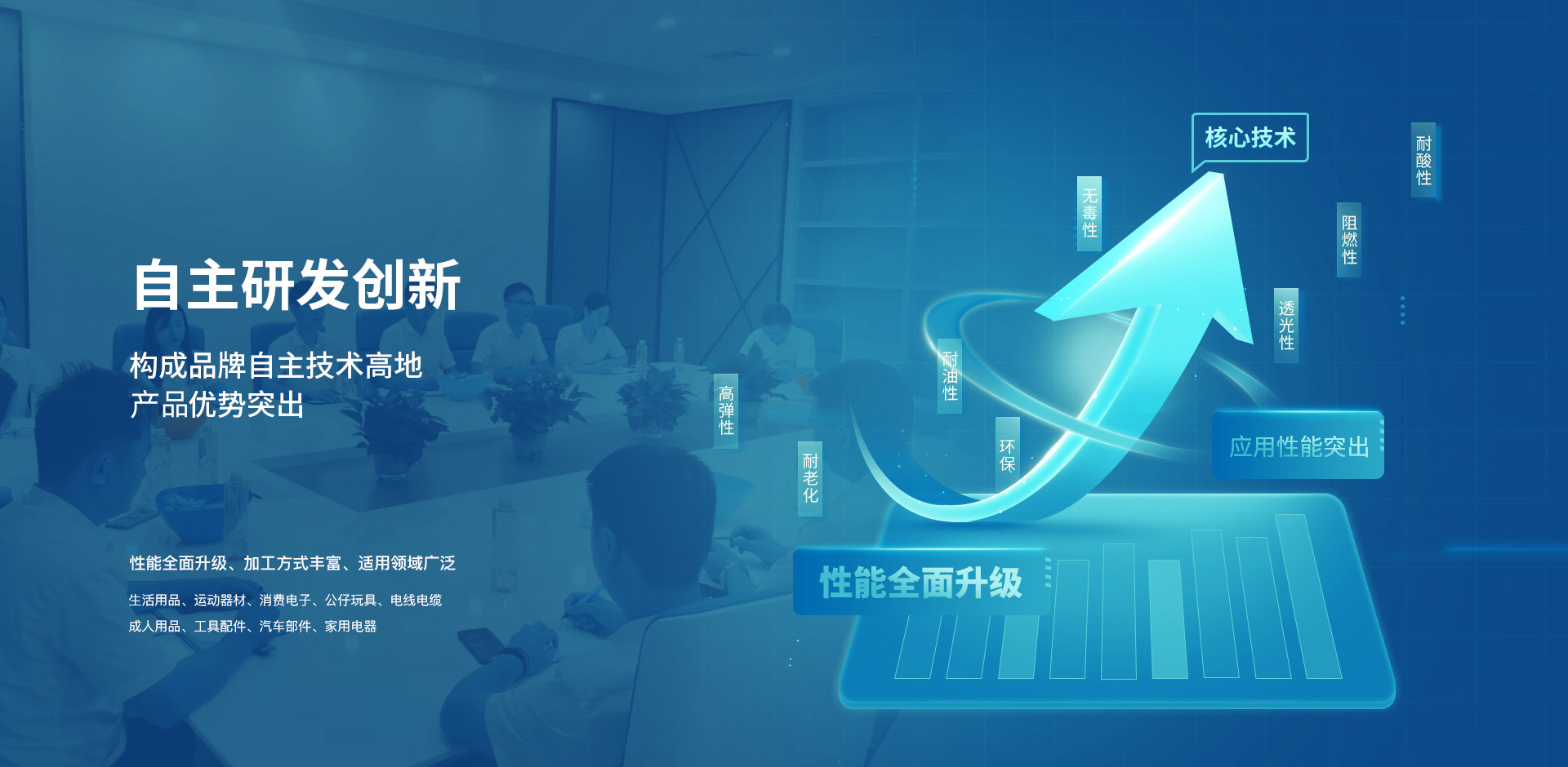凭借对热塑性弹性体TPE/TPR材料的深度研究与丰富应用经验,能够基于TPE/TPR材料应用领域和产品质量标准,给予客户(生产商)专业的应用解决方案或优化建议